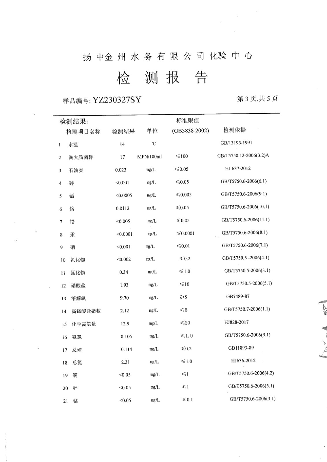 水質(zhì)公告